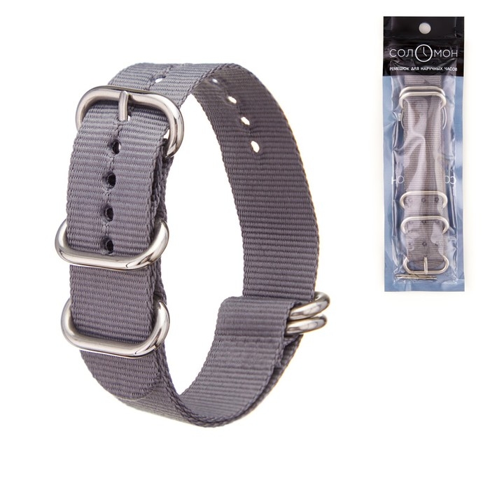 Ремешок для часов "Соломон", 22 мм, l-27 см, серый