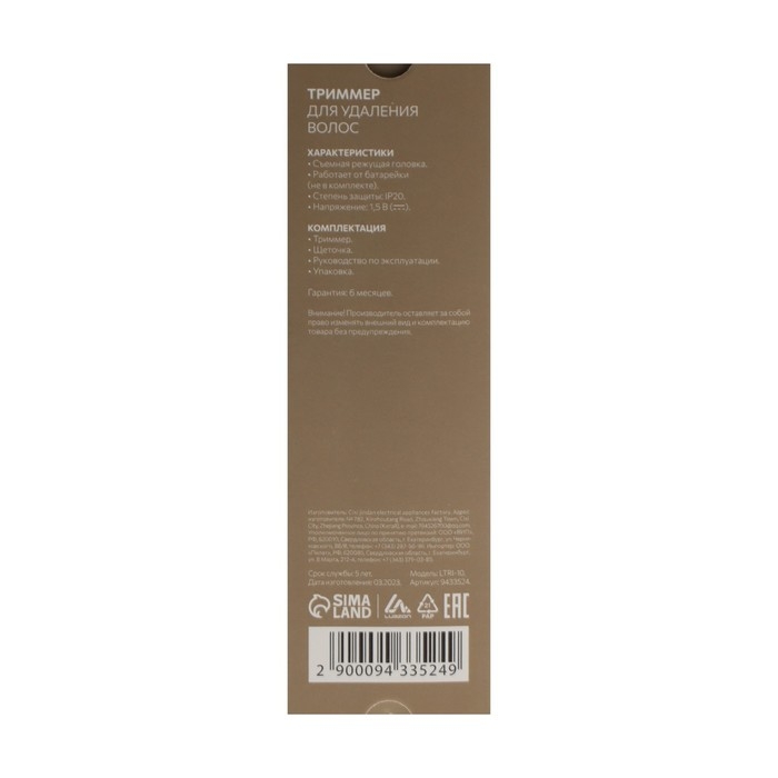 Триммер для волос Luazon LTRI-02, для носа/ушей, АКБ, золотистый