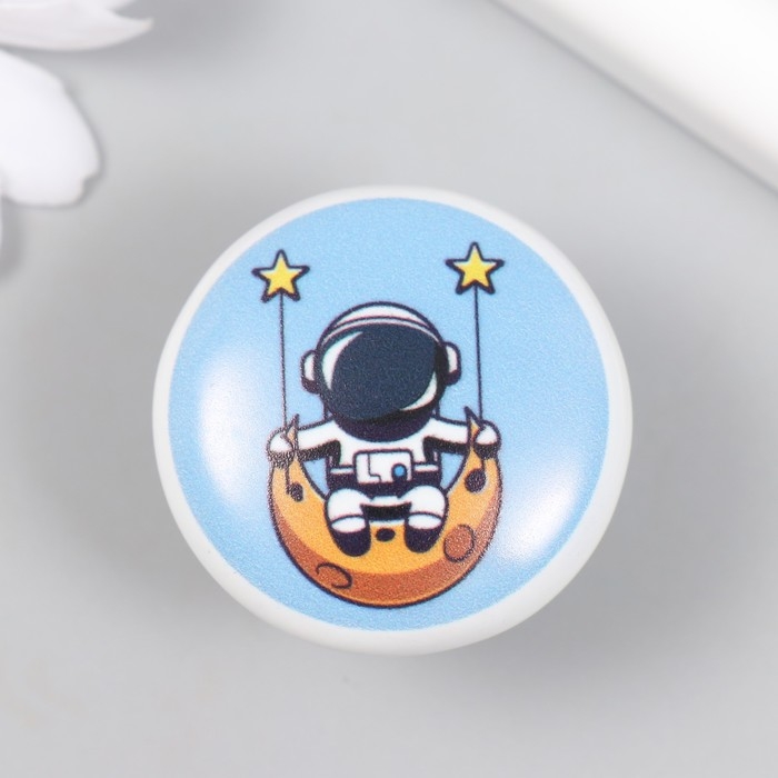 Ручка для шкатулки керамика, металл "Космонавт на качелях" 3,8х3,8 см