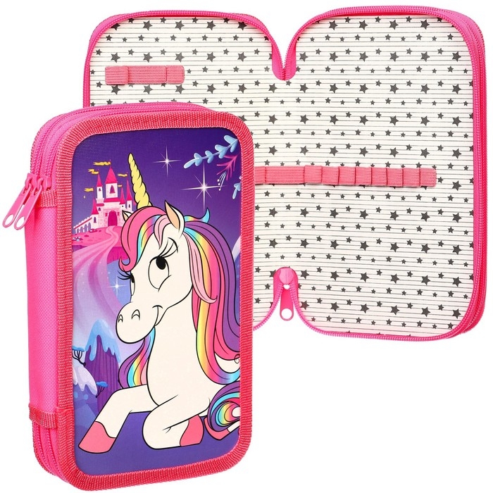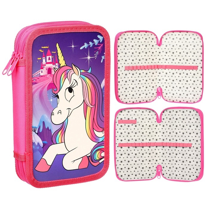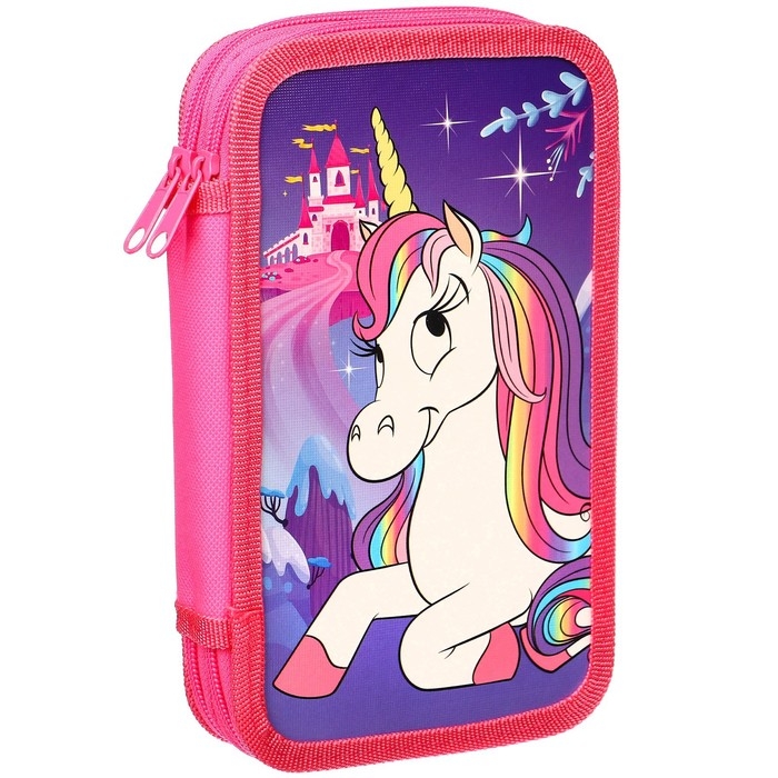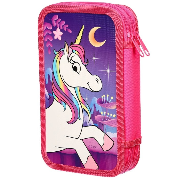 Пенал 2 секции,125х205х40 мм, ламинированный картон, Минни Маус и единорог