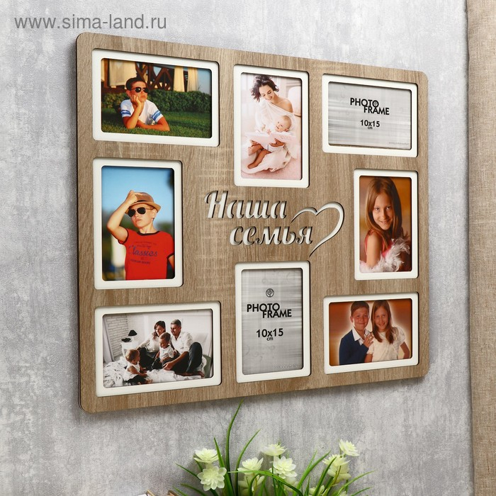 Фоторамка ХДФ "Наша семья" на 8 фото 10x15 см (пластиковый экран)