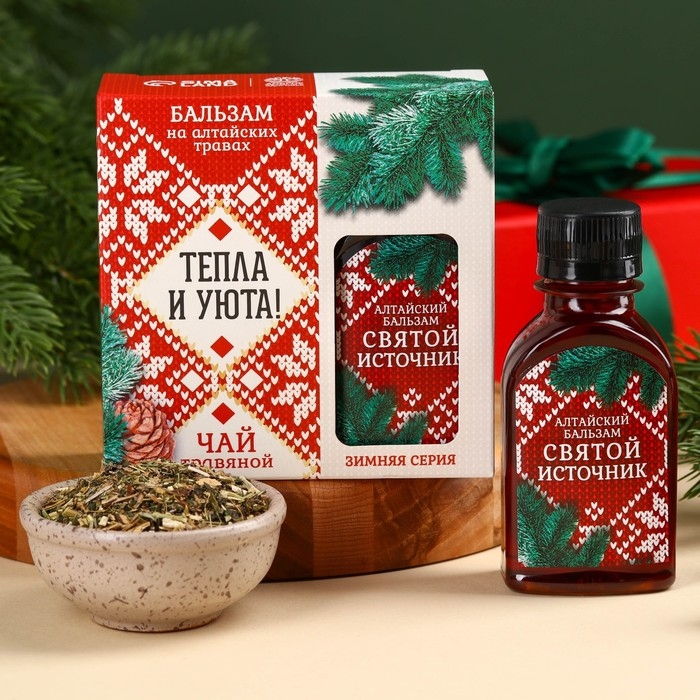 Подарочный набор «Тепла и уюта»: травяной чай 20 г., безалкогольный бальзам 100 мл.
