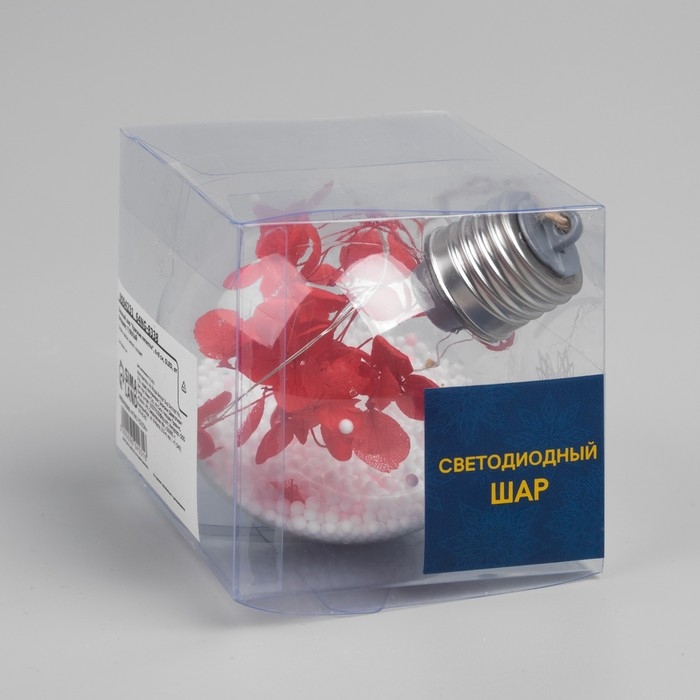 Ёлочный шар «Красные лепестки», батарейки, 5 LED, свечение тёплое белое