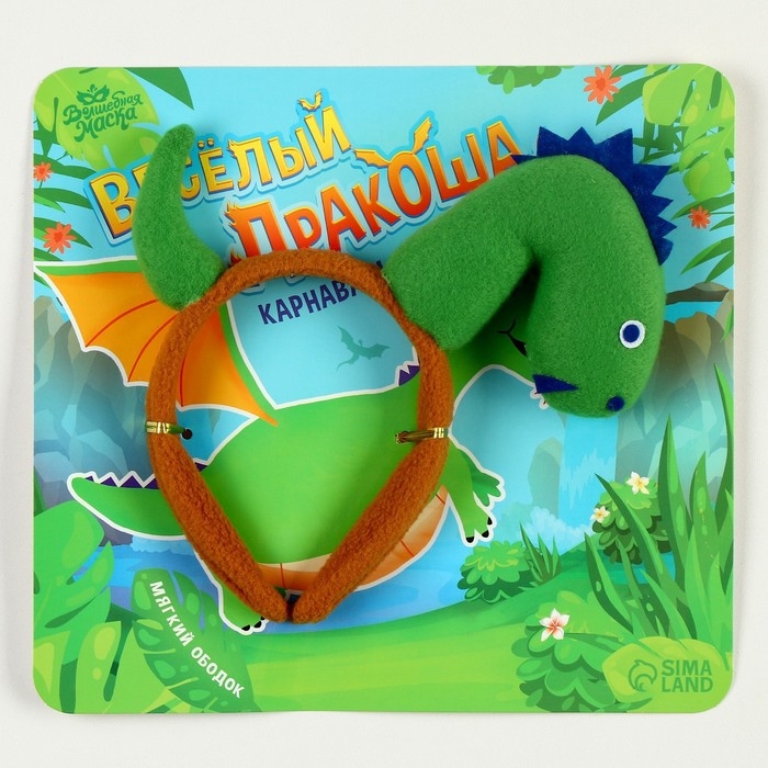 Яркий и забавный карнавальный ободок в виде дракона станет отличным дополнением к праздничному образу вашего ребёнка. Мягкий и безопасный материал аксессуара не причинит дискомфорта даже при длительном ношении. Ободок эластичный, поэтому он надёжно фиксируется на голове, не сдавливая её и не соскальзывая.