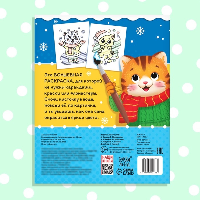 Новый год! Водная раскраска «Забавные зверята», 12 стр.