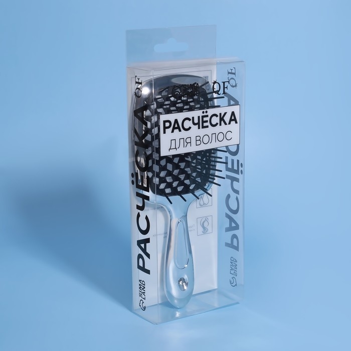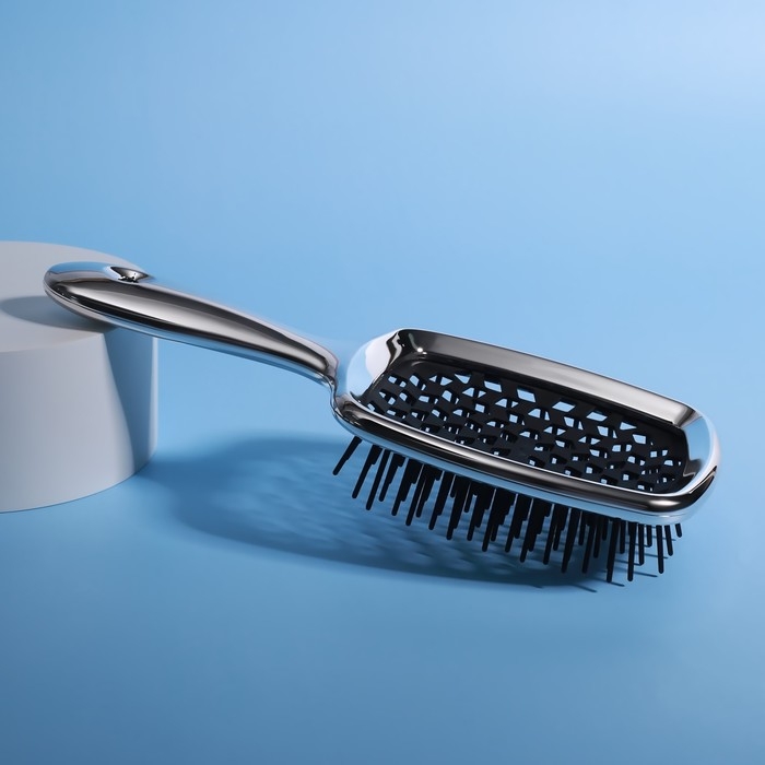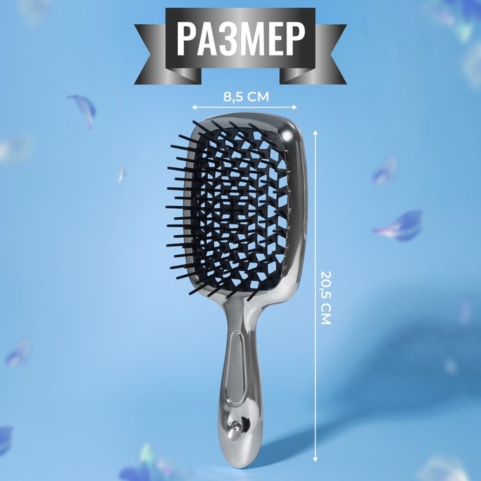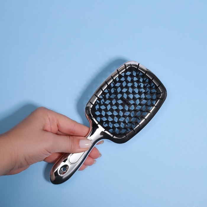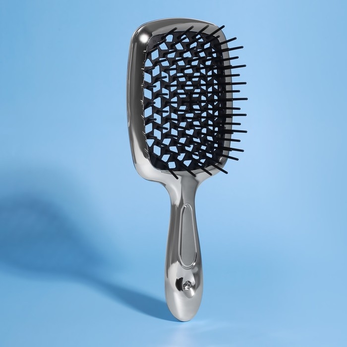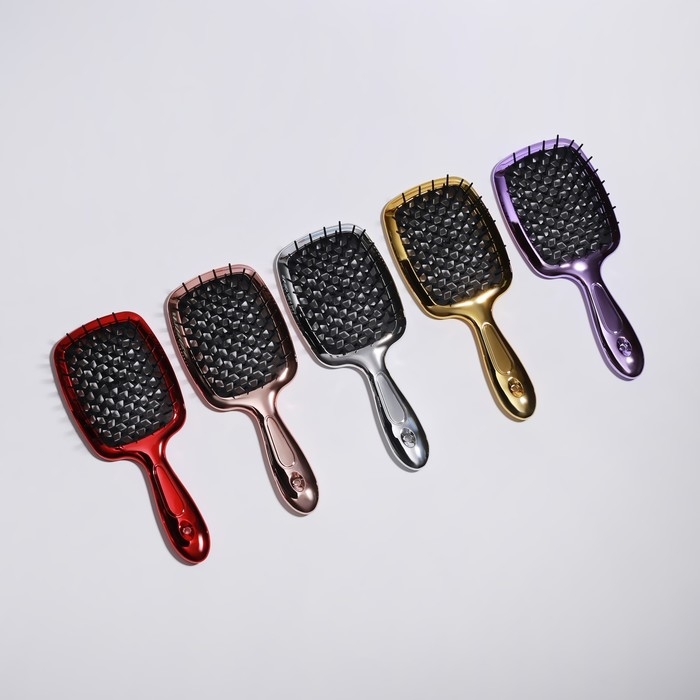 Расчёска массажная, широкая, вентилируемая, с гальваническим покрытием, 8,5 × 20,5 см, PVC коробка, цвет МИКС