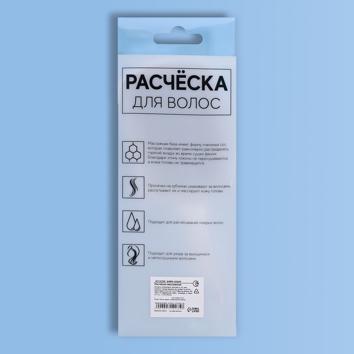 Расчёска подходит для прямых, кудрявых, тонких, ослабленных и нарощенных волос.
