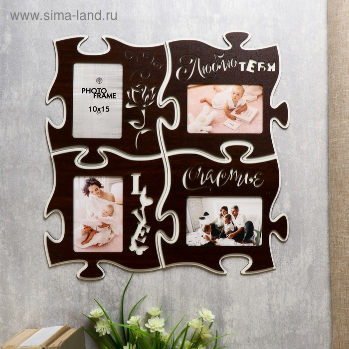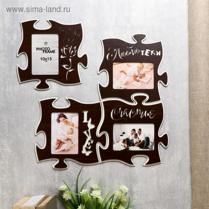 Фоторамка пазл ХДФ "Люблю тебя" из 4 фрагментов 25х25 см