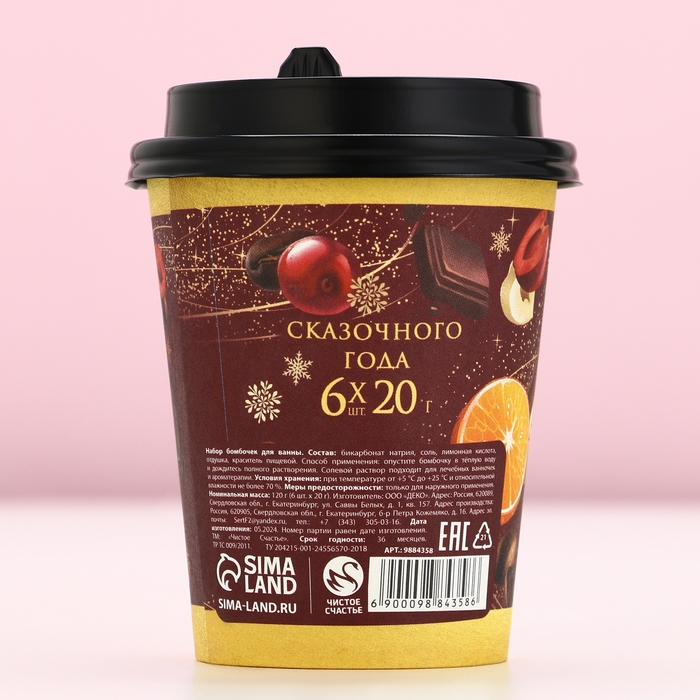 Подарочный набор косметики новогодний «Ароматного года!», бомбочки для ванны, 6 х 20 г, аромат пряного глинтвейна, Новый Год
