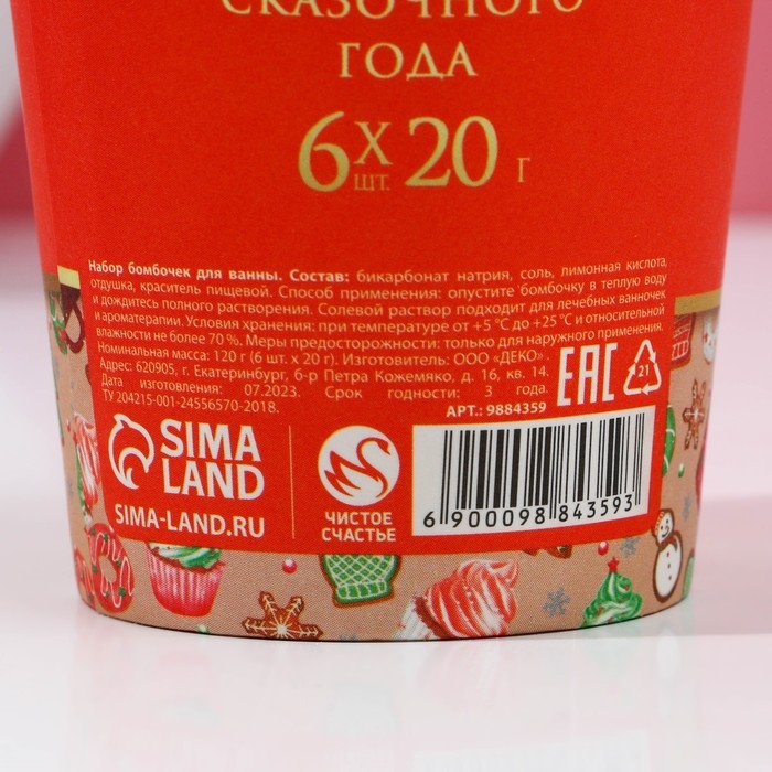 Подарочный набор косметики «Яркого Нового Года!», бомбочки для ванны, 6 х 20 г, ЧИСТОЕ СЧАСТЬЕ