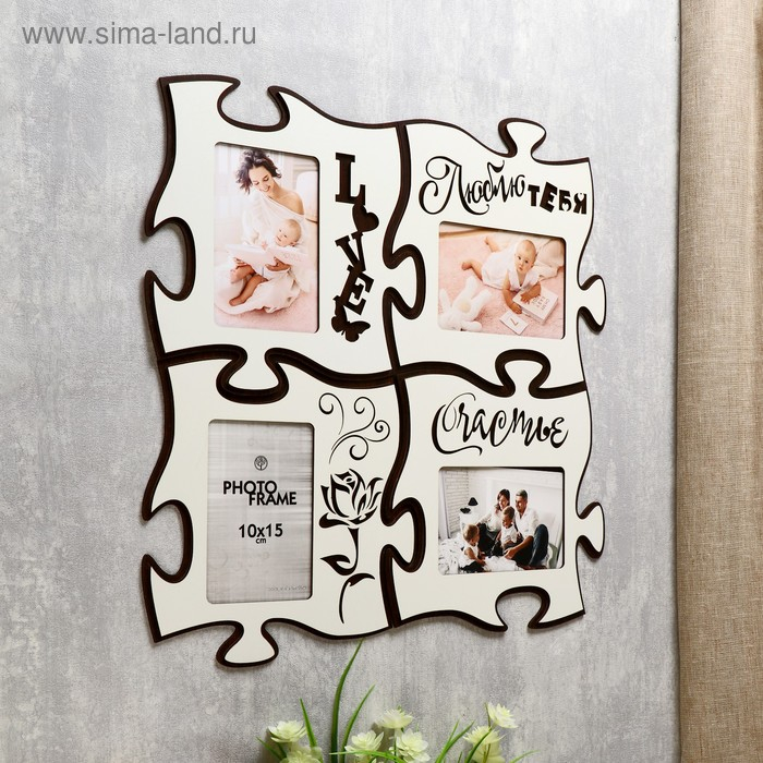 Фоторамка пазл ХДФ "Люблю тебя" из 4 фрагментов 25х25 см