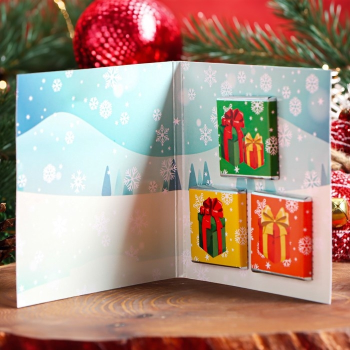 Новый год. Шоколадная открытка "Новогодний Оленёнок", 3 шт х 5 г