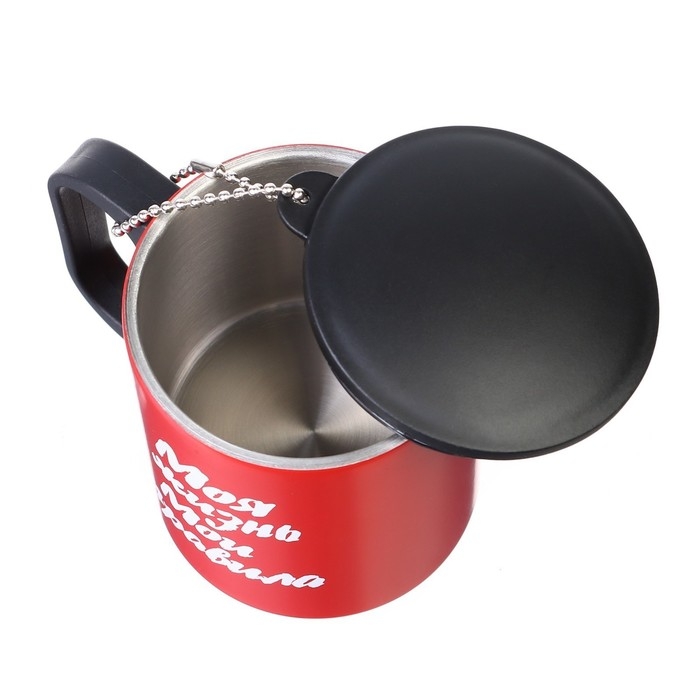 Кружка имеет удобную пластиковую ручку. При желании вы можете снять крышку и использовать ее без нее. Классическая форма стакана обеспечит удобство использования, а авторский дизайн подчеркнёт индивидуальность обладателя.