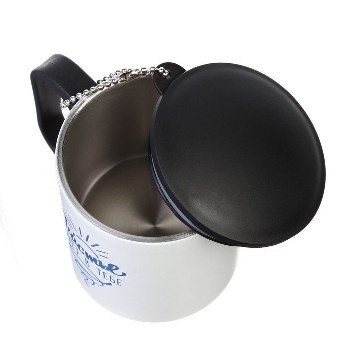 Кружка имеет удобную пластиковую ручку. При желании вы можете снять крышку и использовать ее без нее. Классическая форма стакана обеспечит удобство использования, а авторский дизайн подчеркнёт индивидуальность обладателя.