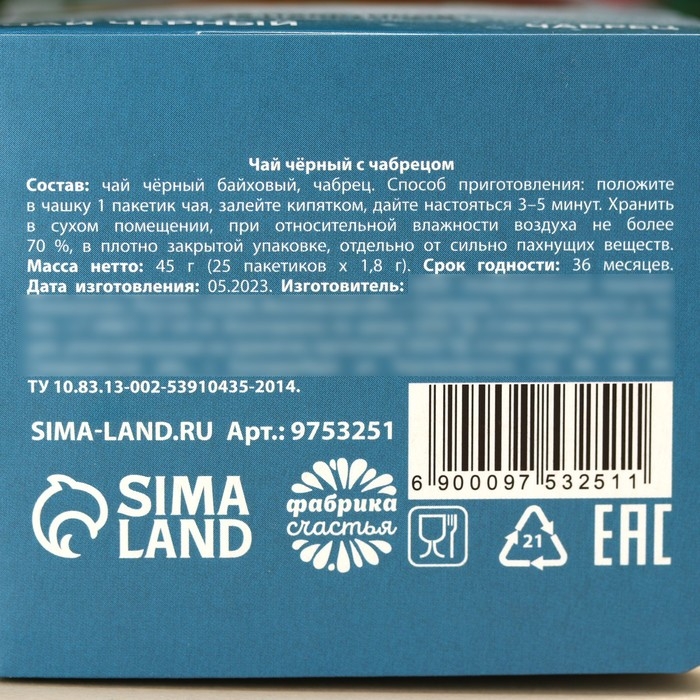 Состав: чай чёрный байховый, чабрец.