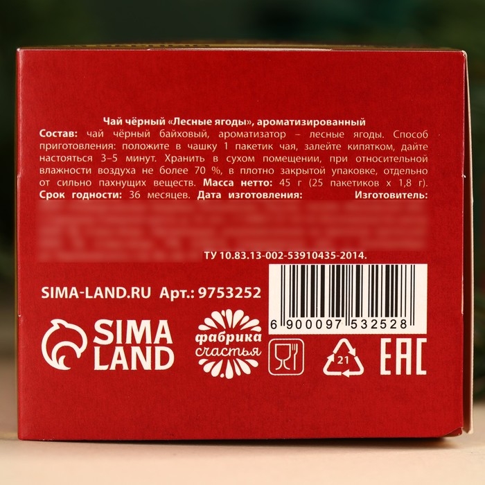 Новый год! Чай в пакетиках «Новый год», вкус: лесные ягоды, 45 г ( 25 шт. х 1,8 г).