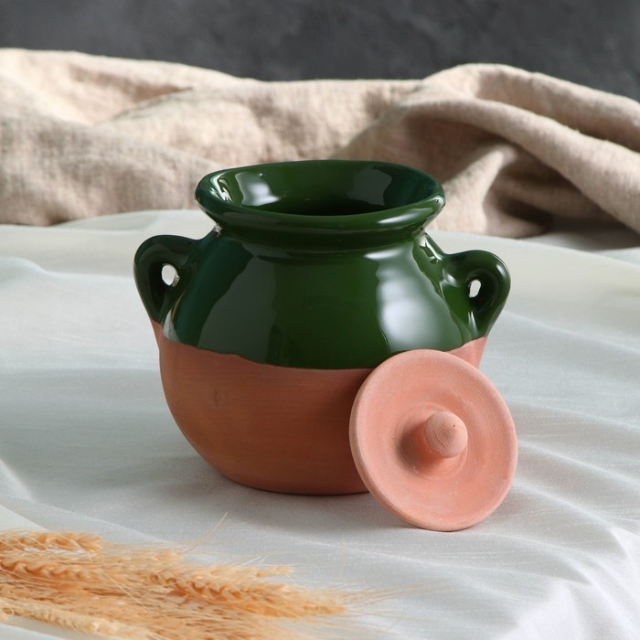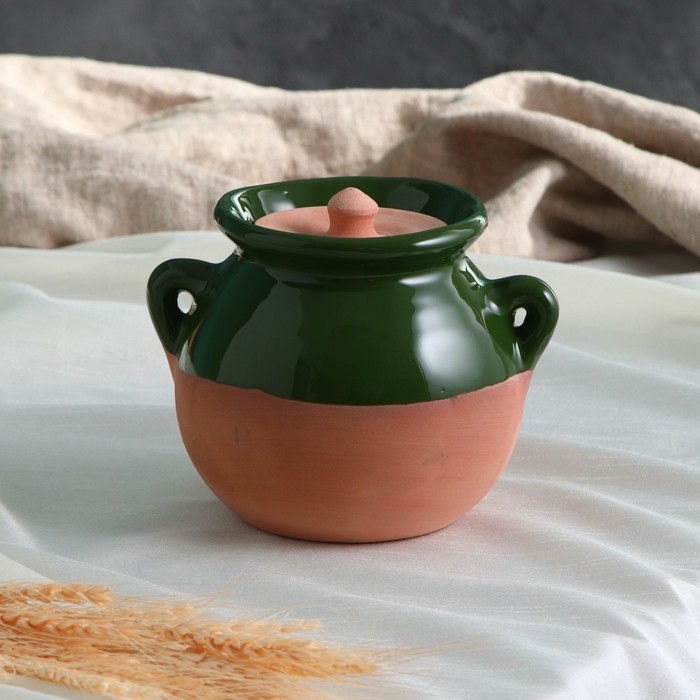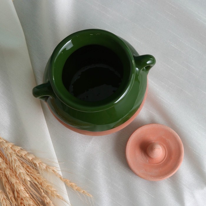Горшок керамический для запекания "Борисовский" 0,7л / 15х9см, зеленый