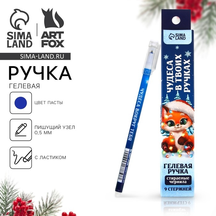 Новый год. Ручка пиши-стирай гелевая и стержни «Чудеса в твоих ручках», синяя паста, 0.5 мм