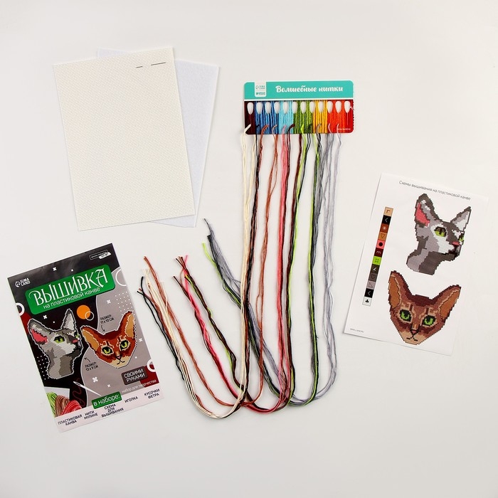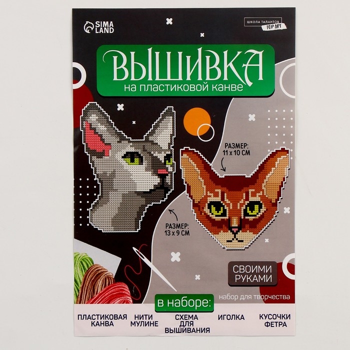 Вышивка крестиком на пластиковой канве «Важные котики», набор для творчества