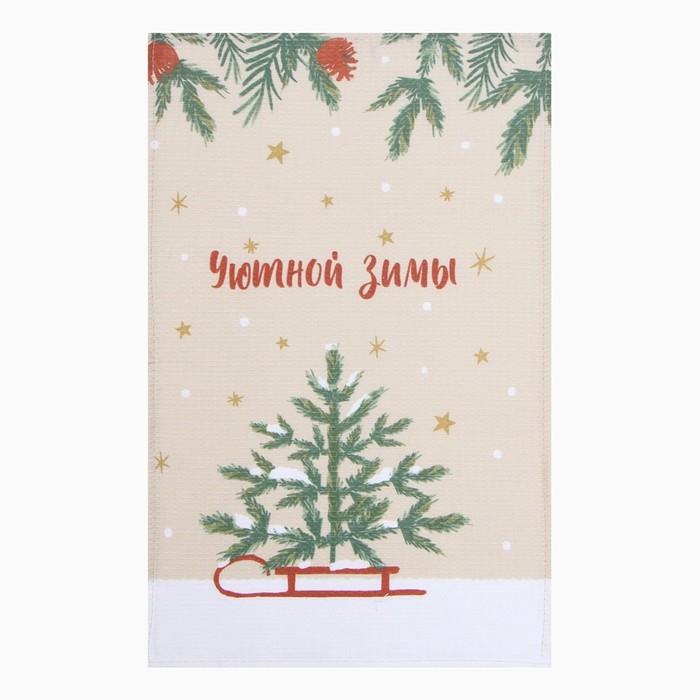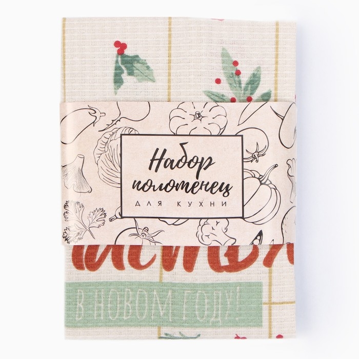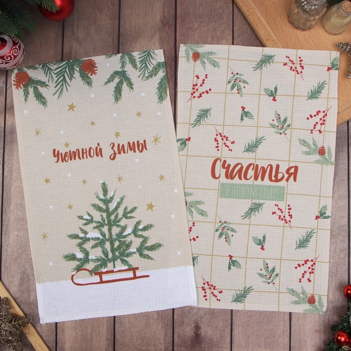Новый год. Набор полотенец Доляна "Зимние праздники" 28х46 см - 2 шт, 100% хл, вафля 160 г/м2