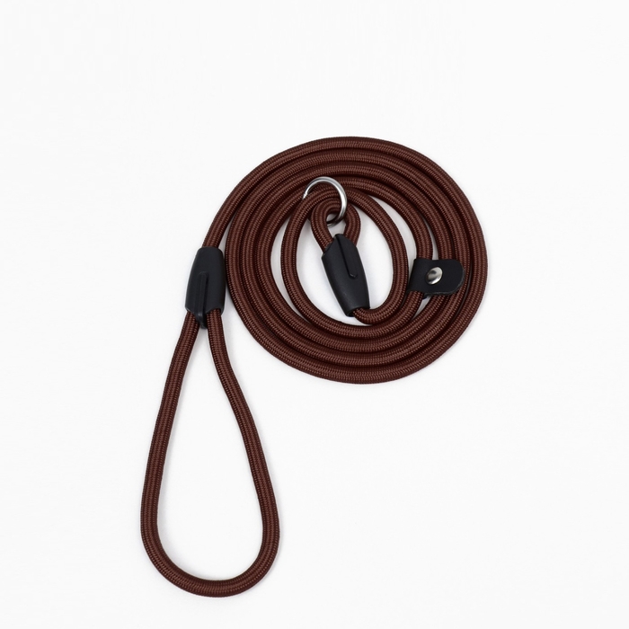 Поводок-удавка 150 см х 6 мм, полиэстер и натуральная кожа, чёрный