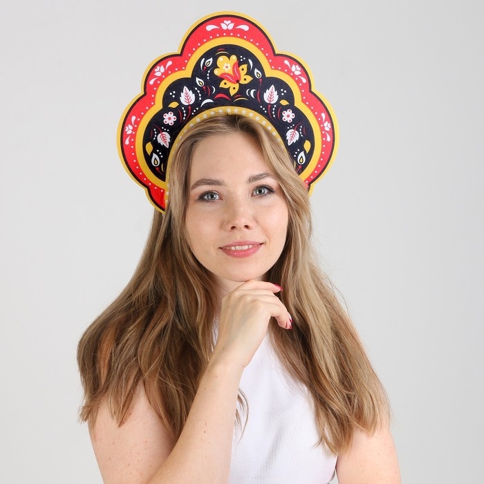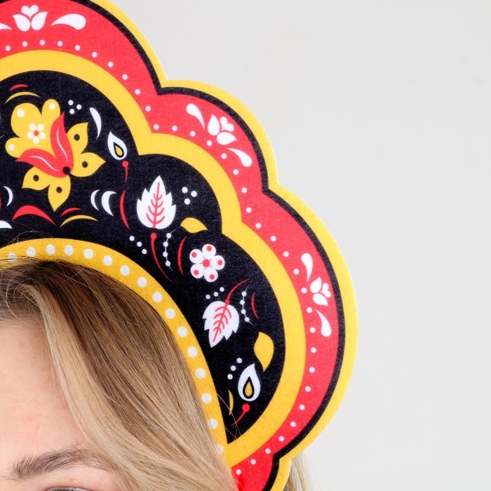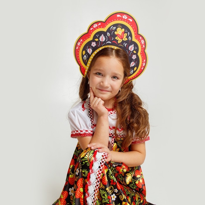 - Кокошник представлен в едином размере, который подходит для детей и взрослых.