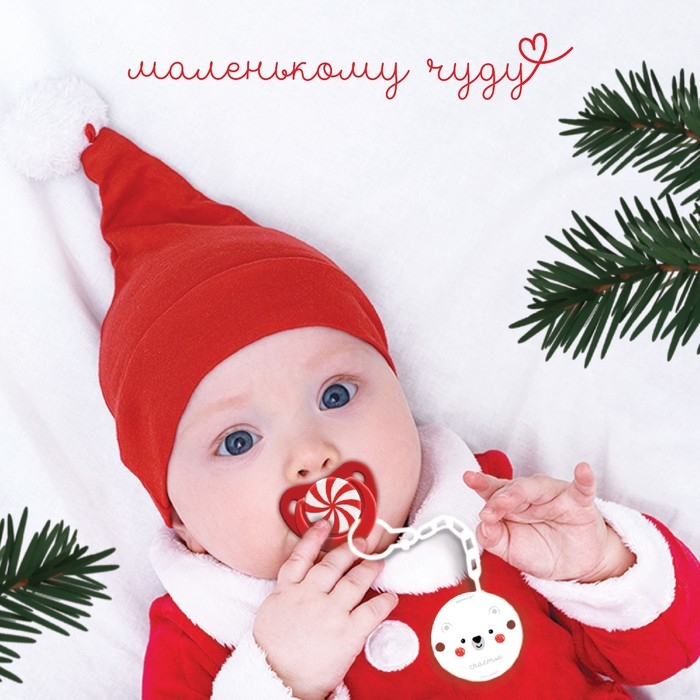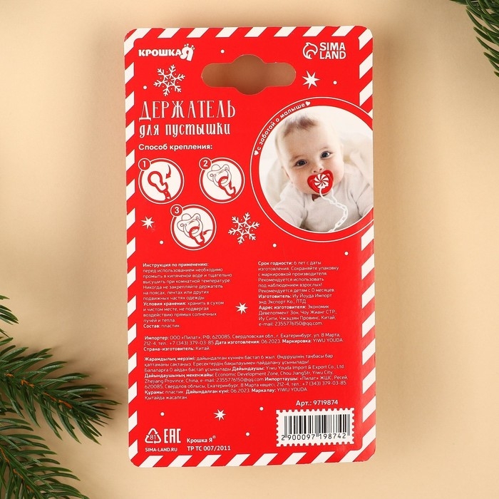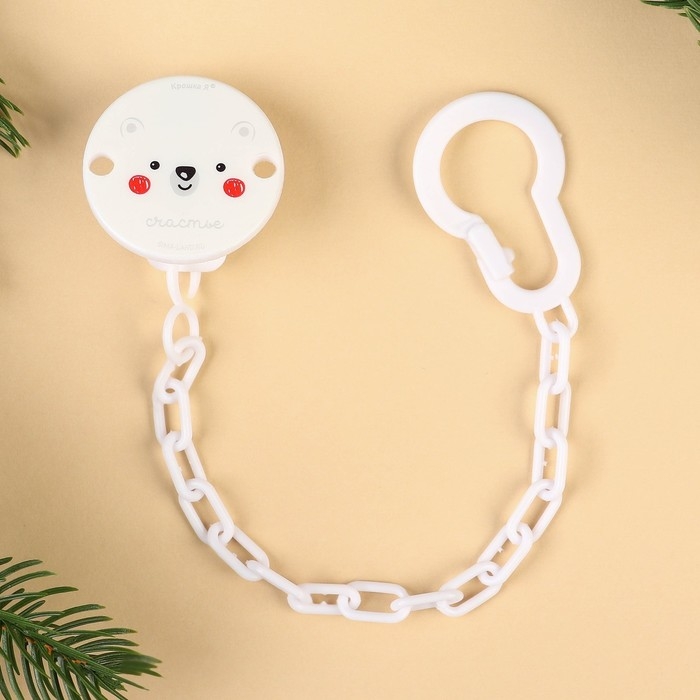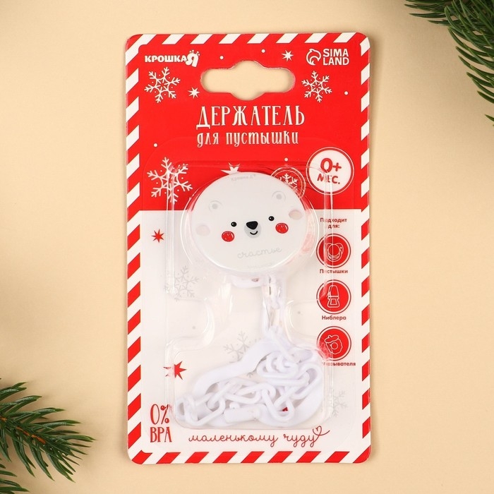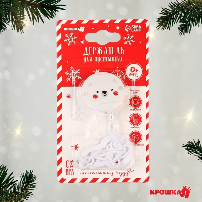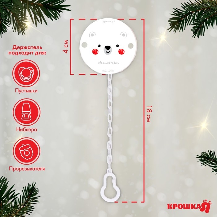 Держатель для соски - пустышки «Медвежонок», новогодний, на цепочке, цвет белый, подарочная упаковка, Крошка Я