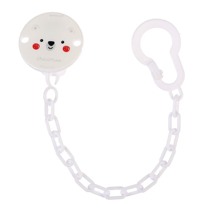 Изделие фиксируется на одежде ребёнка. На конце цепочки есть карабин, который зацепляется за кольцо пустышки. Надёжное крепление убережёт вещь от падения на пол, если малютка случайно выронит её изо рта.