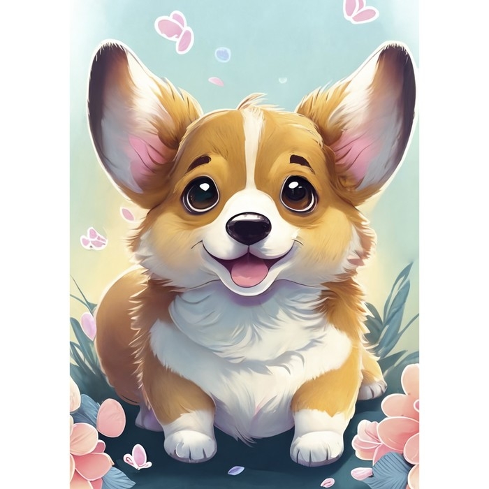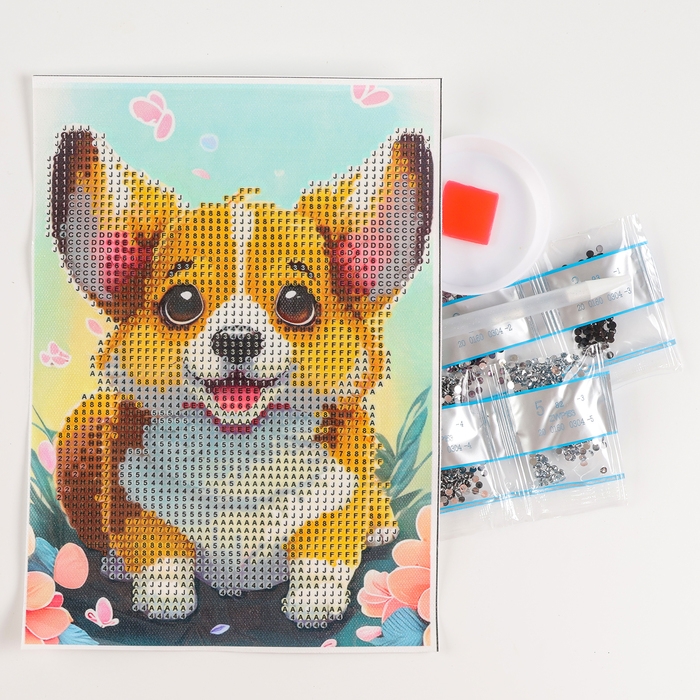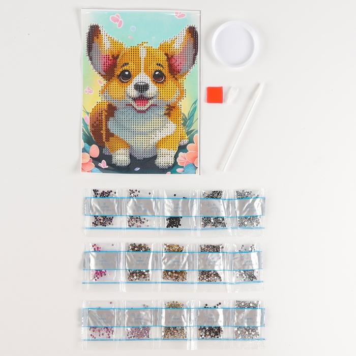 Алмазная вышивка с частичным заполнением «Малыш корги», 15 х 21 см, холст