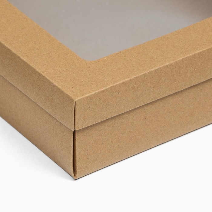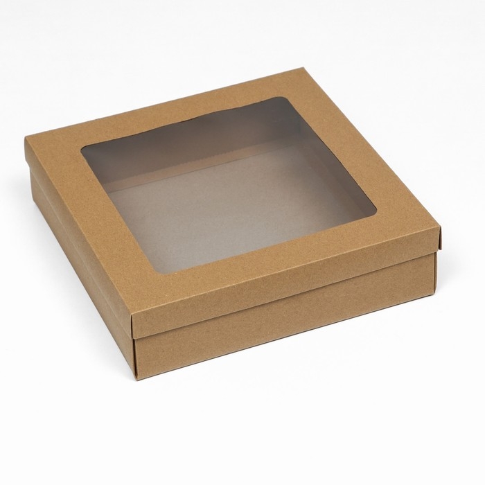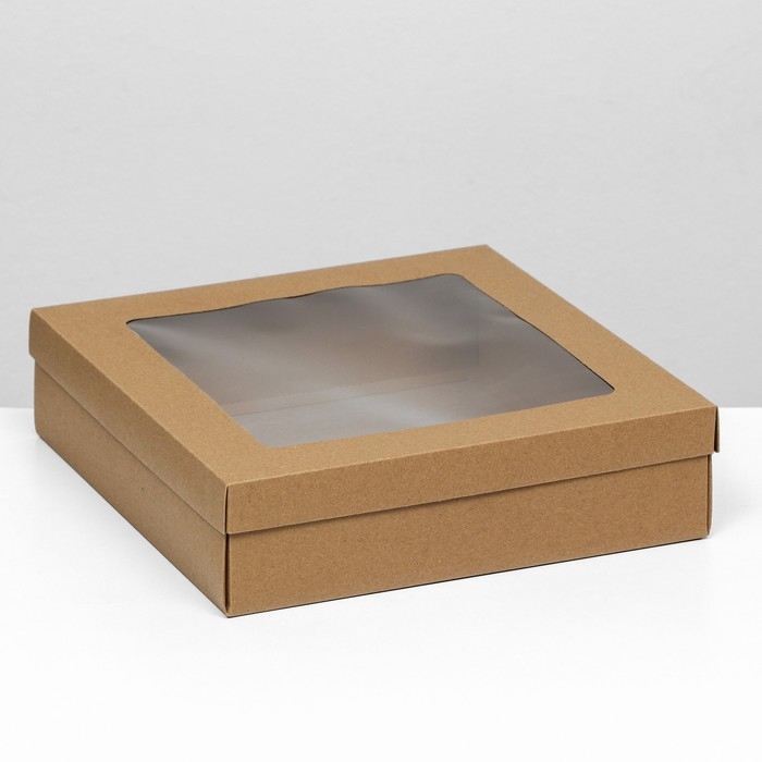 Коробка подарочная складная, упаковка, крышка-дно, с окном, крафт, 30 х 30 х 8 см