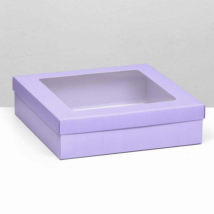 Коробка подарочная складная, упаковка, крышка-дно, сиреневая, с окном 30 х 30 х 8 см