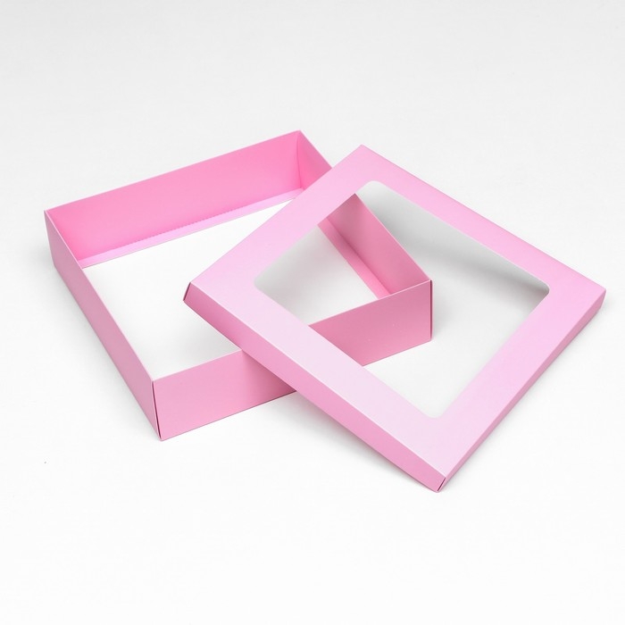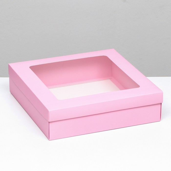 Коробка подарочная складная, упаковка, крышка-дно, розовая, с окном 30 х 30 х 8 см