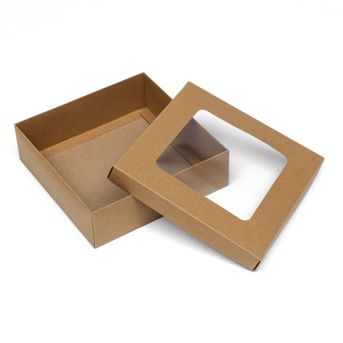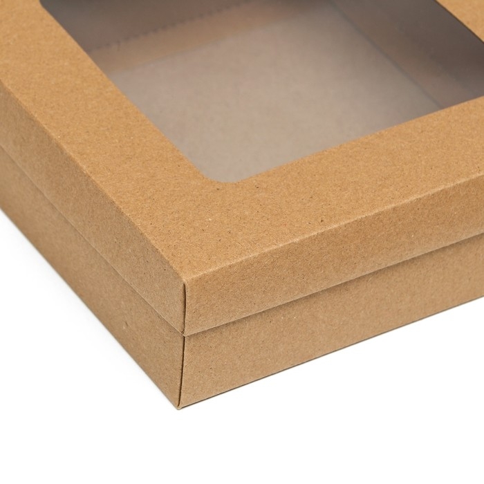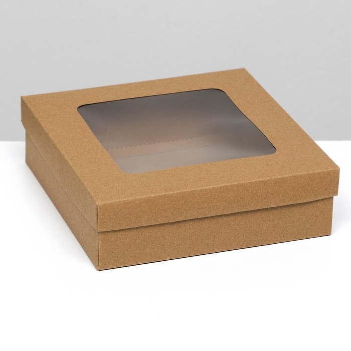 Коробка подарочная складная, упаковка, крышка-дно, с окном, крафт, 20 х 20 х 6 см