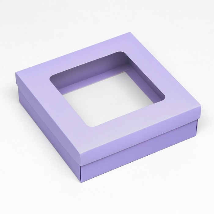 Коробка подарочная складная, упаковка, крышка-дно, сиреневая, с окном 20 х 20 х 6 см