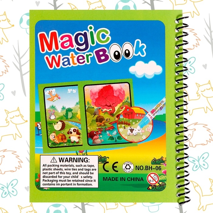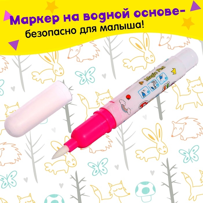 Книжка для рисования водой «Зверята», с маркером