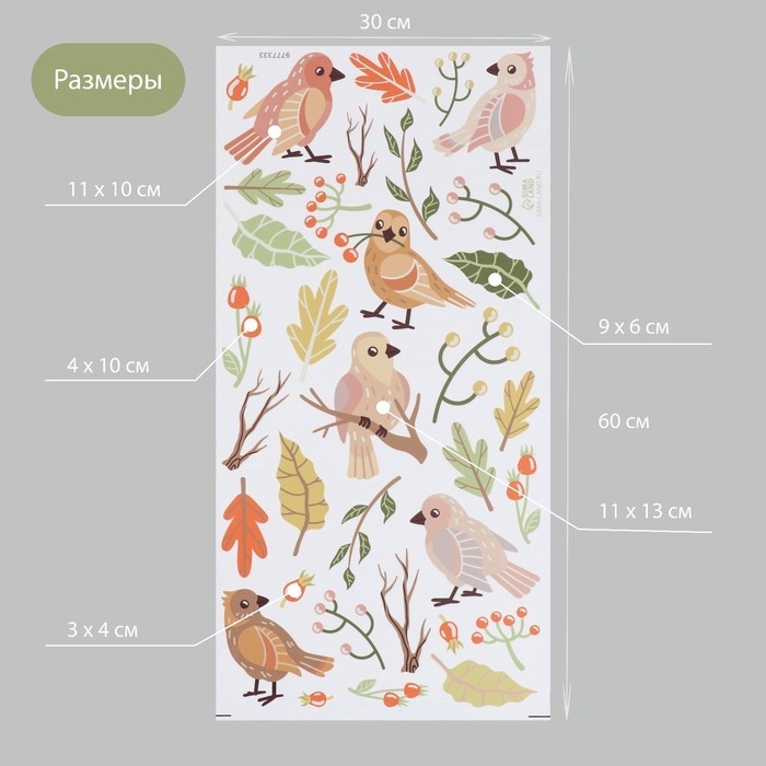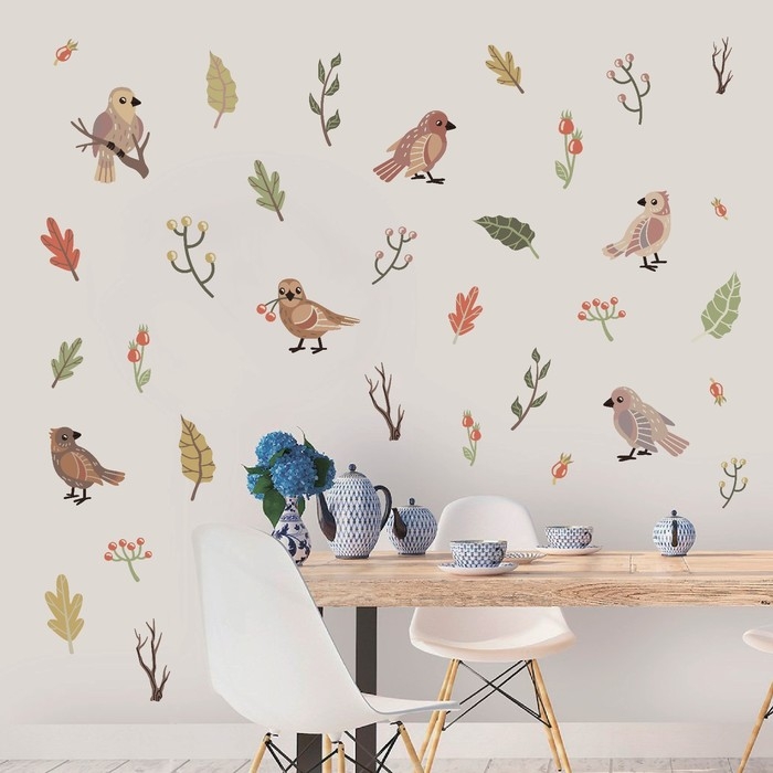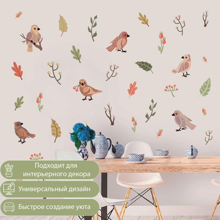 Наклейка интерьерная цветная "Птички и ягодки" 30х60 см