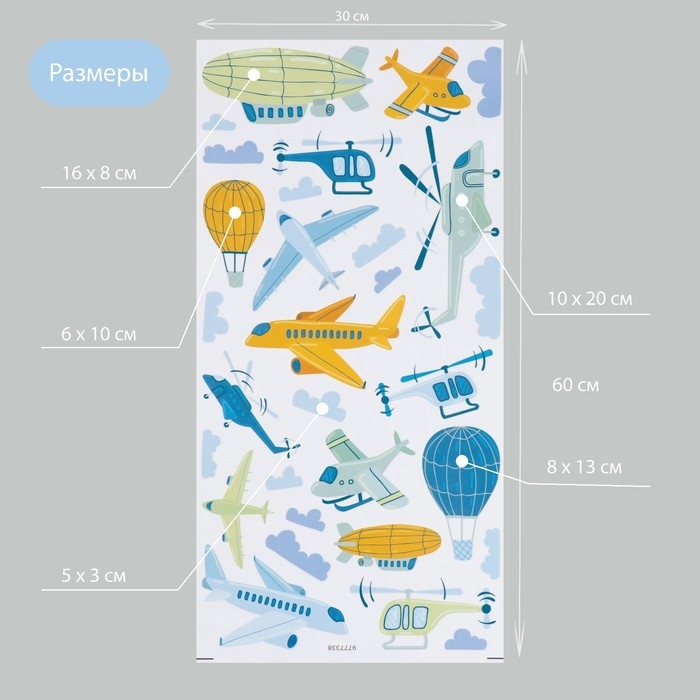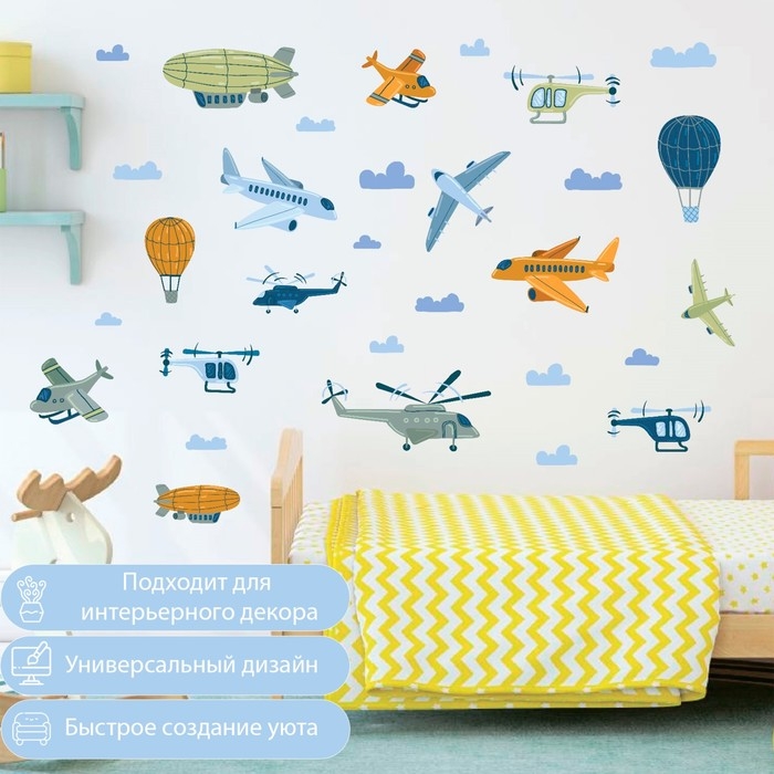 Наклейка интерьерная цветная "Воздушный транспорт" 30х60 см
