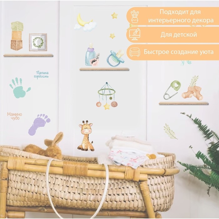 Наклейка интерьерная цветная "Мамино чудо и папина радость" 30х60 см