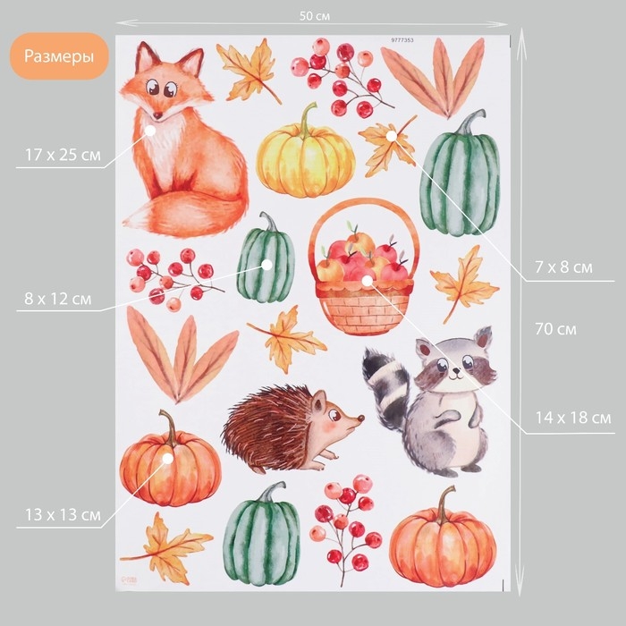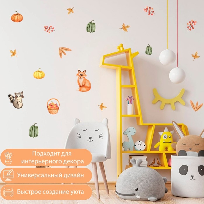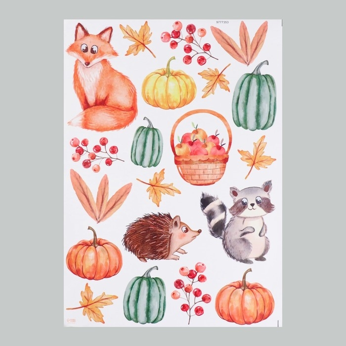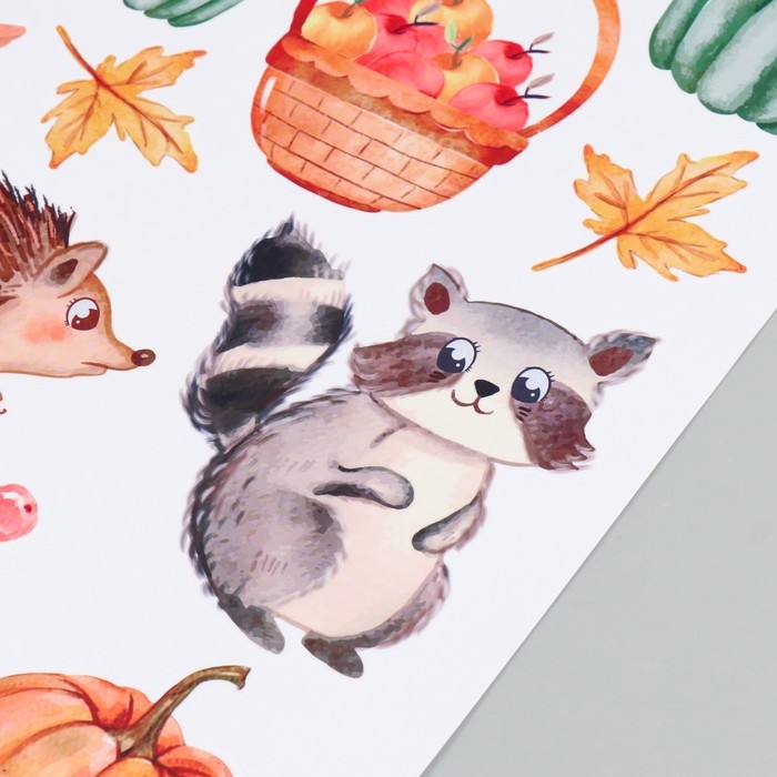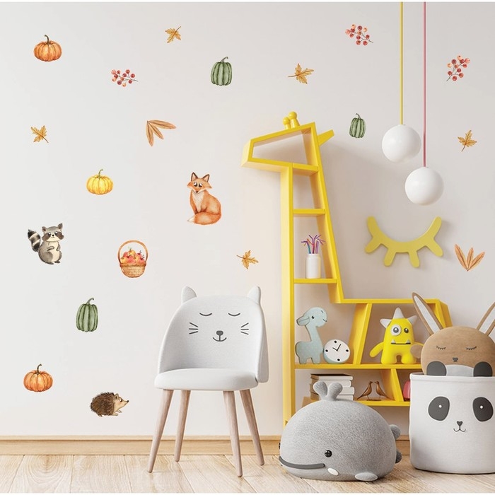 Наклейка интерьерная цветная "Зверята в осеннем лесу" 50х70 см