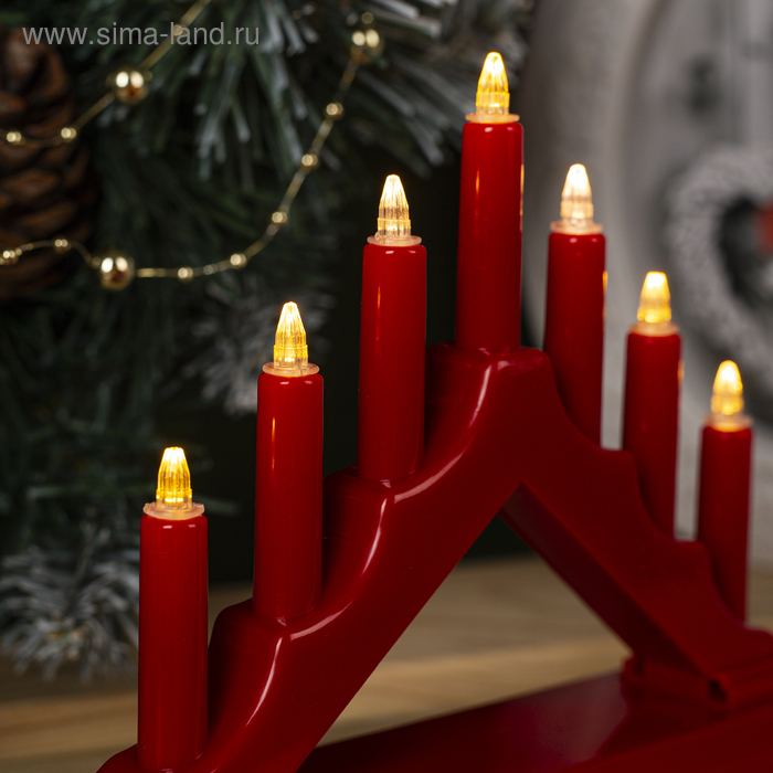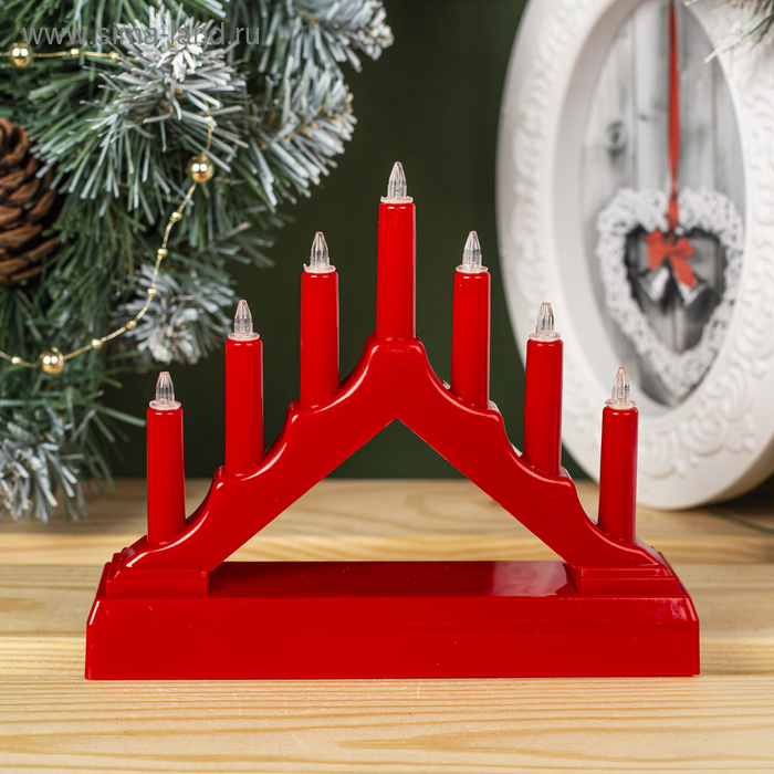 Светодиодная фигура «Красная рождественская горка», пластик, батарейки ААх2 (не в комплекте), свечение тёплое белое