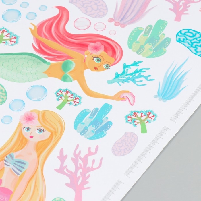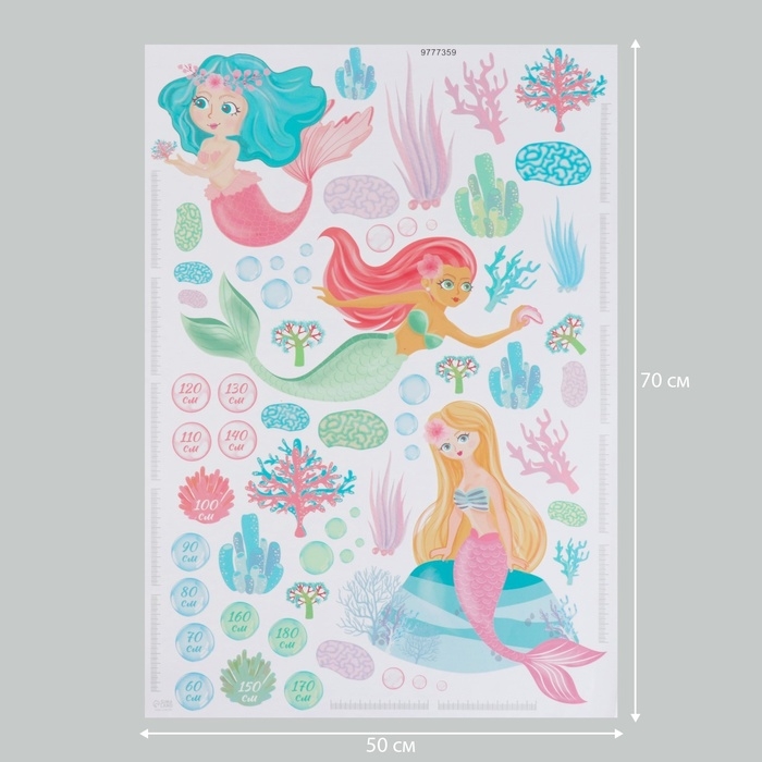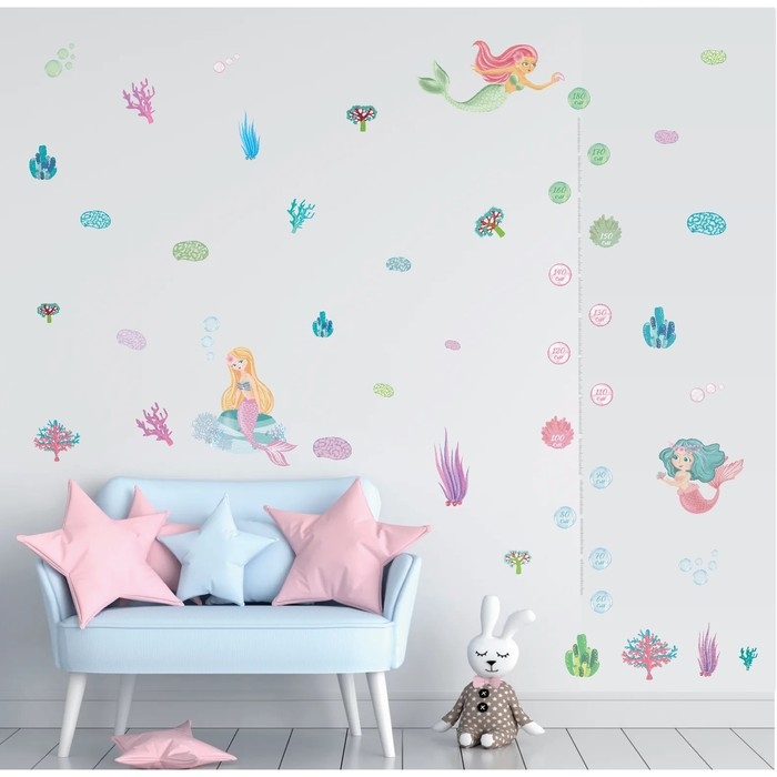 Наклейка интерьерная цветная ростомер "Русалочки" 50х70 см