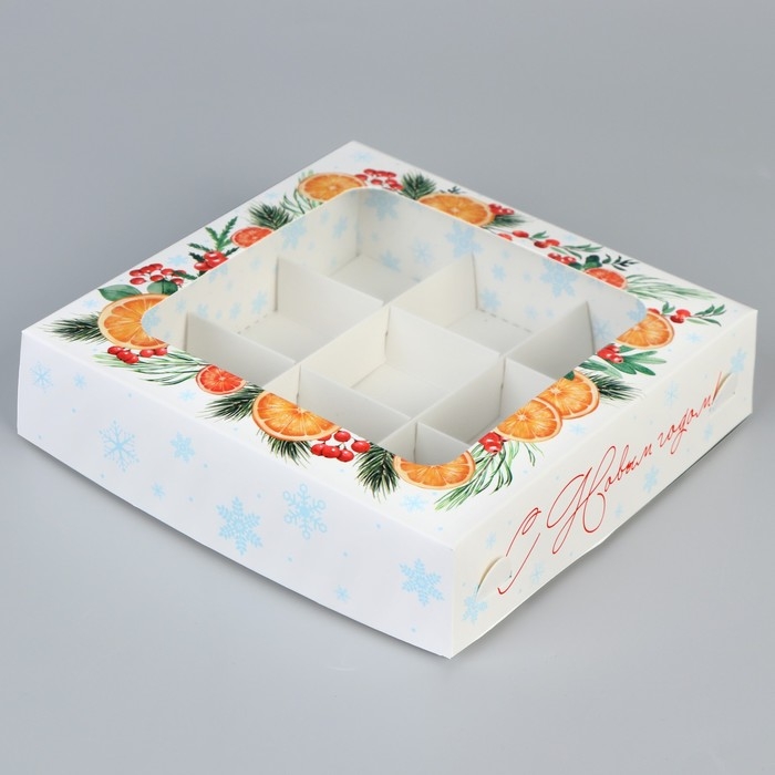 Коробка под 9 конфет «С Новым годом», ботаника, 14.7 х 14.7 х 3.5 см, Новый год