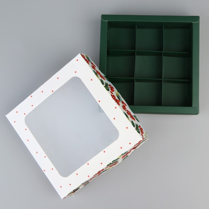 Коробка для 8 конфет + шоколад, с окном, белая, 17,7 х 17,8 х 3,8 см. Кондитерская упаковка