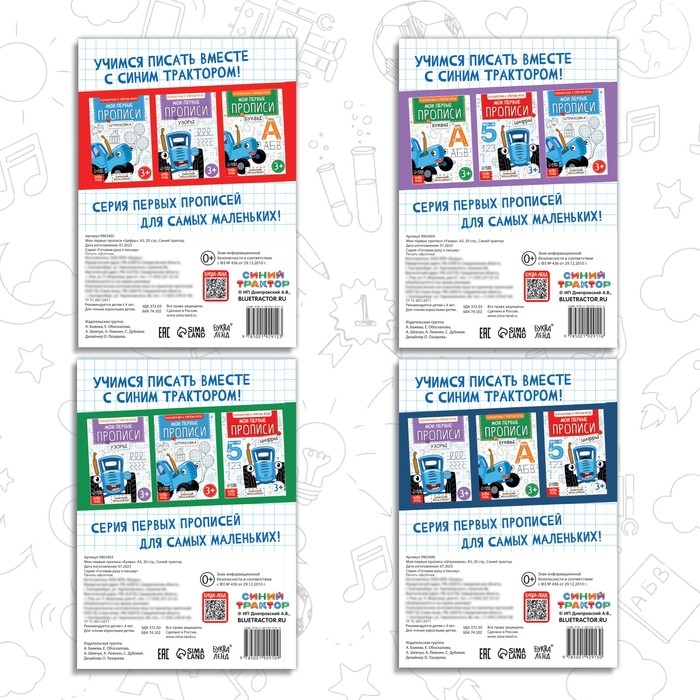 Набор книг из серии «Мои первые прописи» поможет ребёнку подготовить руку к письму. Вместе с героями любимого мультфильма «Синий трактор» заниматься интереснее вдвойне!