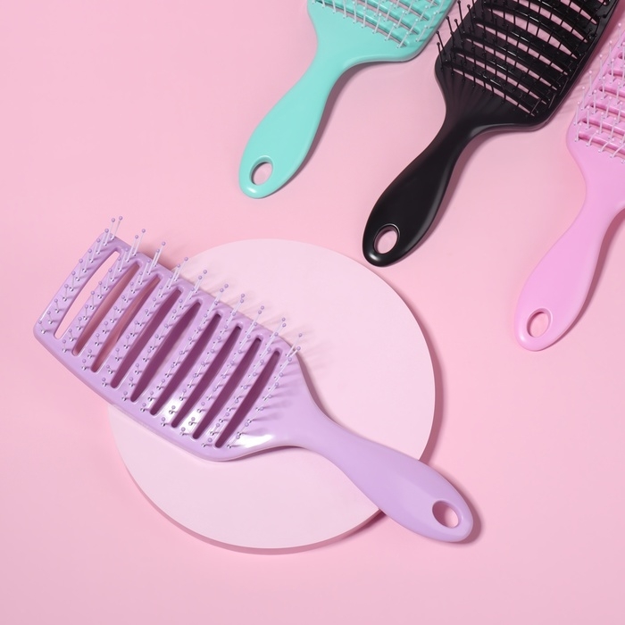 Расчёска массажная, широкая, вентилируемая, 8,4 × 20,5 см, цвет МИКС