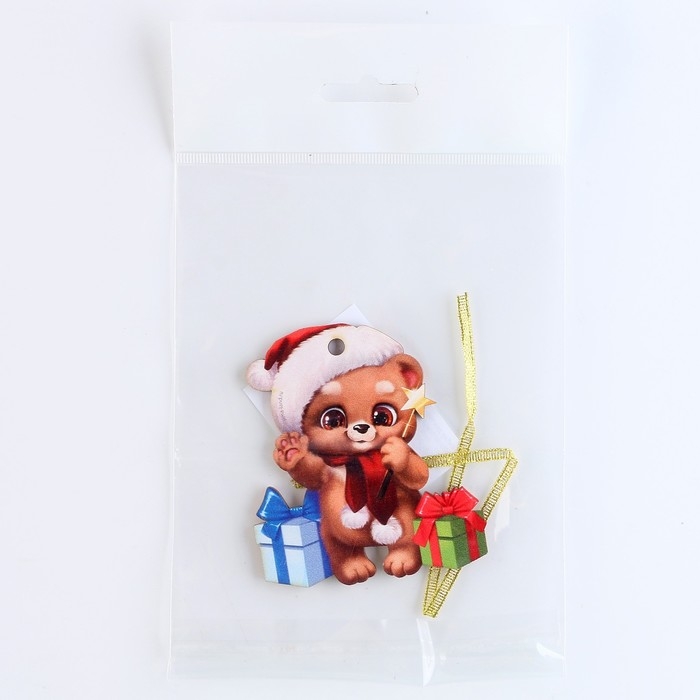Ёлочная игрушка - подвеска деревянная «Новый год! Мишутка»