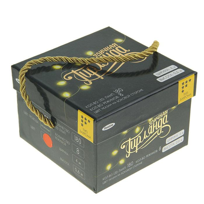 Гирлянда «Бахрома» 4 × 0.6 м, IP44, прозрачная нить, 180 LED, свечение красное, 8 режимов, 220 В