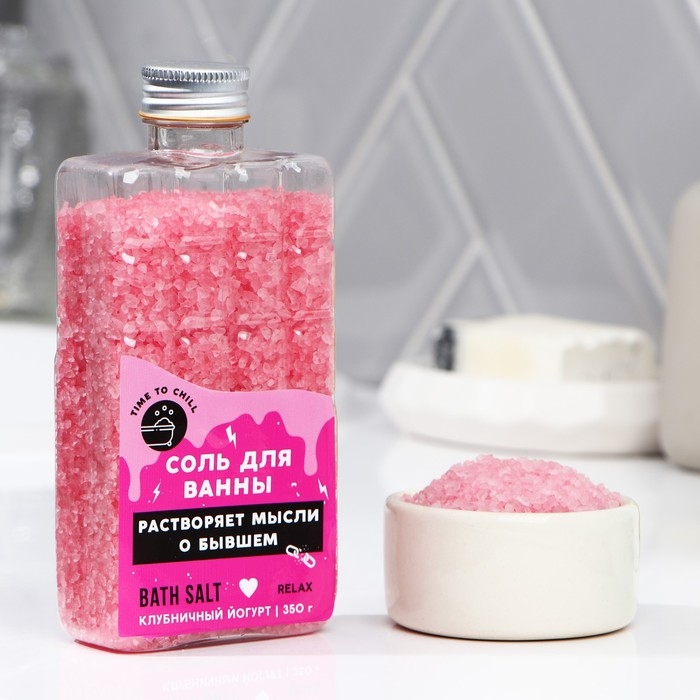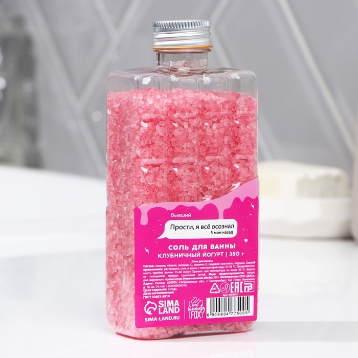 Соль для ванны «Растворяет мысли о бывшем», 350 г, аромат клубничного йогурта, BEAUTY FOX