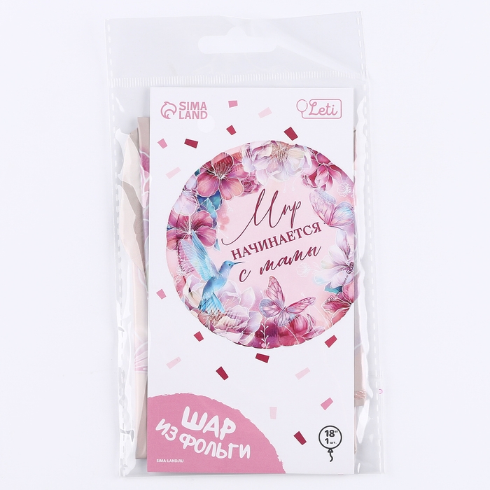 Воздушный шар фольгированный 18" «Мир начинается с мамы», круг, с подложкой