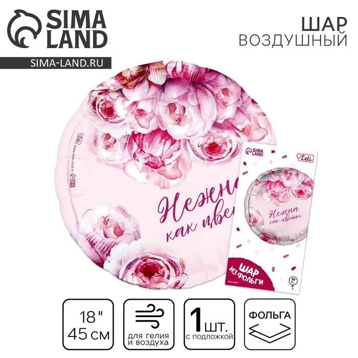 Фольгированный шар в форме круга с надписью: «Нежна, как цветок» станет приятным комплиментом для любимой девушки или женщины. Шар подойдёт в качестве дополнения к подарку на 8 Марта, День рождения или любой другой праздник!
